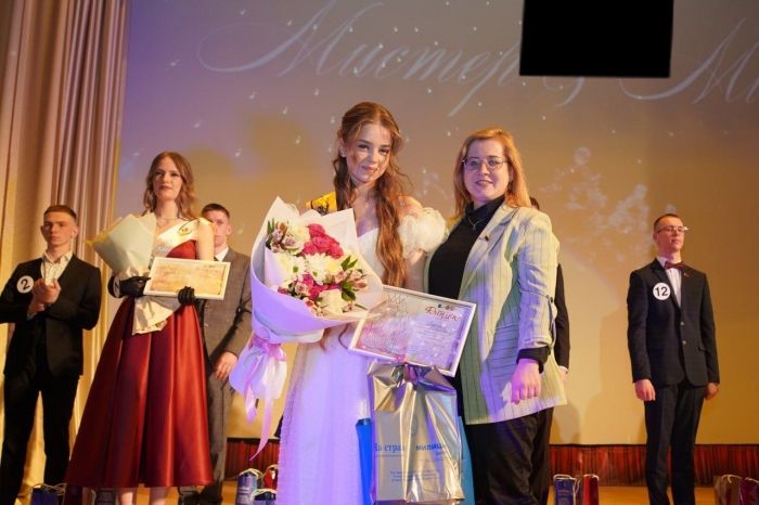 Также к церемонии награждения для передачи титулов Мисс и Мистера Могилевского института МВД присоединились победители 2024 года Александра Шабанова и Иван Емельянов.
