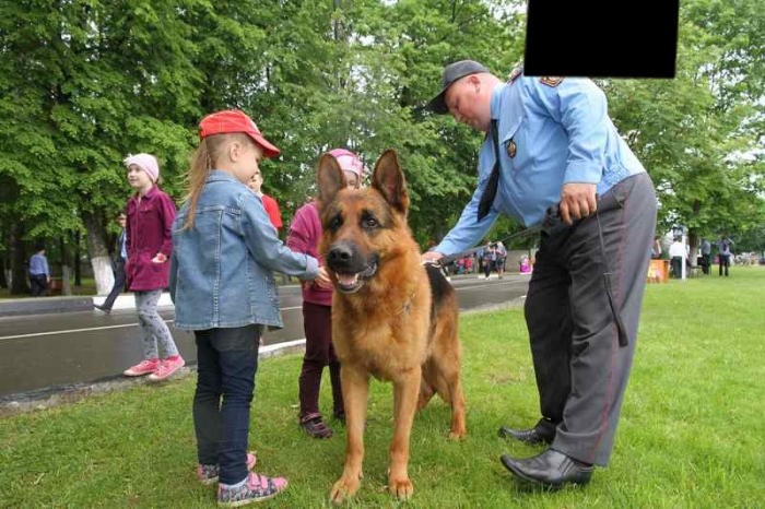 Показательное выступление сотрудников кинологической службы Могилевского управления Департамента охраны с четвероногим помощником очаровало детей. Послушная и ласковая овчарка так понравилась малышам, что они еще долго не отходили от нее и интересовались у хозяина о привычках и повадках собаки.
